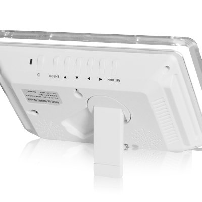 - FREE 2GB SD MEMORY CARD DISPLAY: 7" LCD CORNER TO CORNER OF THE SCREEN EXCLUDING FRAME- PHOTO TRANSITION EFFECT: BLIND VERTICAL, BLIND HORIZONTAL, FADE IN FADE OUT, RANDOM, NO EFFECT AND ANOTHER 10 EFFECTS!!