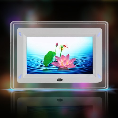 Buy 7" White Digital Photo Frame with Blue Lights + 2GB SD Memory Card Now