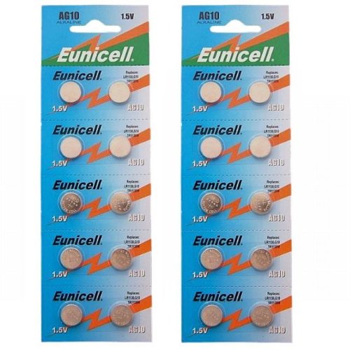 - A set of 20 AG10 Alkaline Button Batteries.- Packaging: Blister packs of 10 batteries