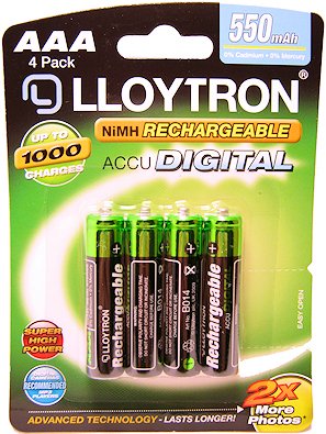 Lloytron rechargable batteries are 4x longer lasting than alkaline batteries and can be recharged up to 1000 times, making them ideal for use with todays digital products.