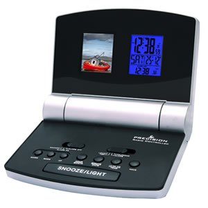 The PREC0055/AP013 radio contolled LCD travel alarm with digital photo frame is a perfect companion for any regular traveller. This handy little travel alarm clock has an MSF frequency receiver that allows automatic set up in UK With a colour display to show upto 50 JPEG photos, you will never be far from your loved ones.
