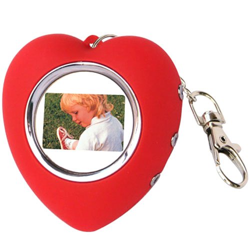 This 1.1" digital photo viewer can be used as a keyring or bag pendant. Pictures can be easily loaded from a computer via the USB cable supplied. It has a long lasting built-in battery rechargeable from your computer USB. The dimensions 48(W)x50(H)x18(D)mm with weight 22g only.