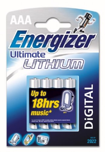 Energizer Ultimate Lithium is ideal for high drain devices such as Digital Cameras, MP3 Players and Portable LCD TVs, where performance matters.