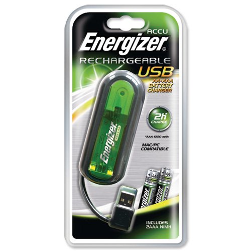 Energizer USB Battery Charger with 2x AAA Batteries 2-5Hrs Charging Time AA or AAA Ref 629969